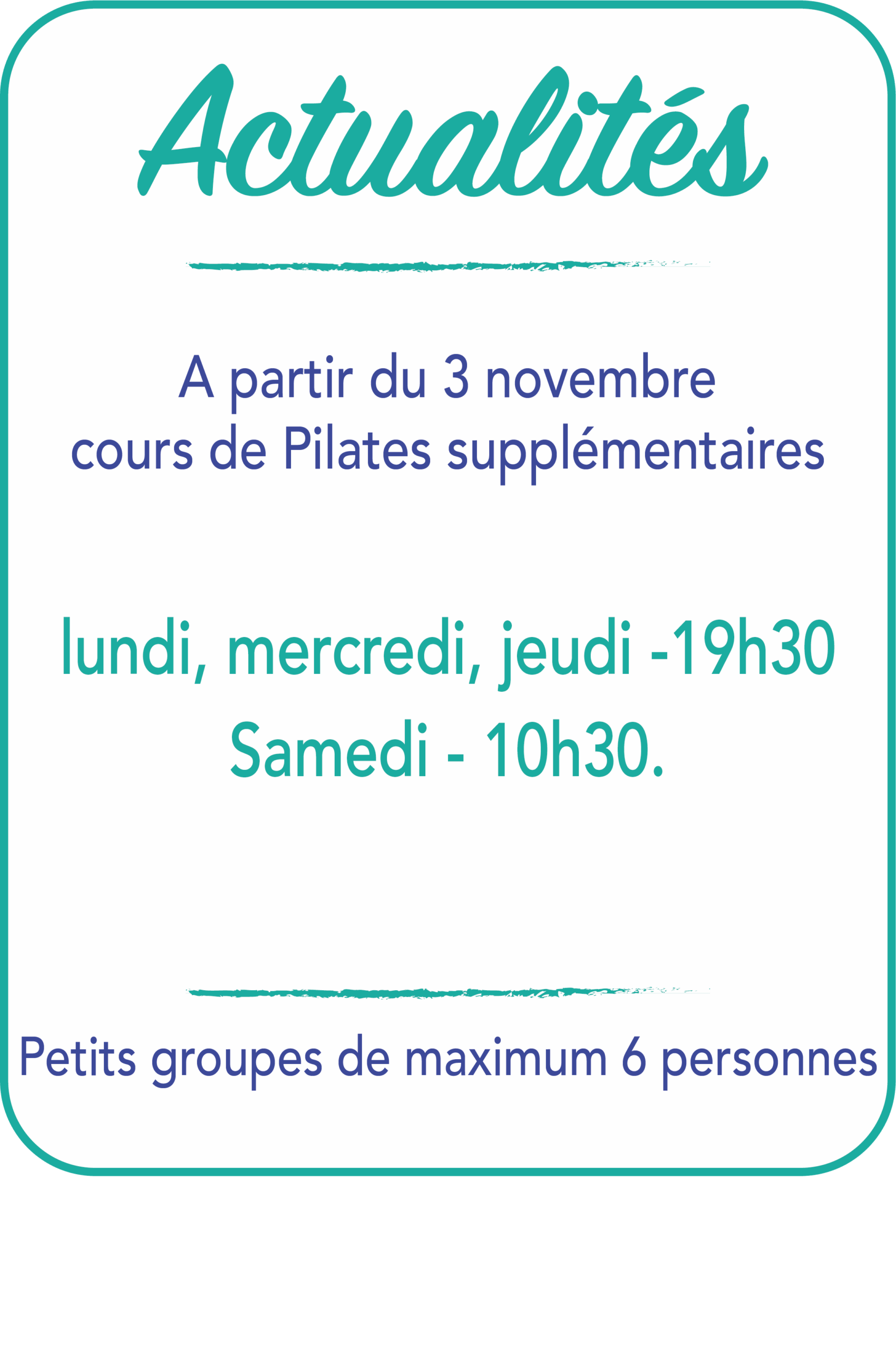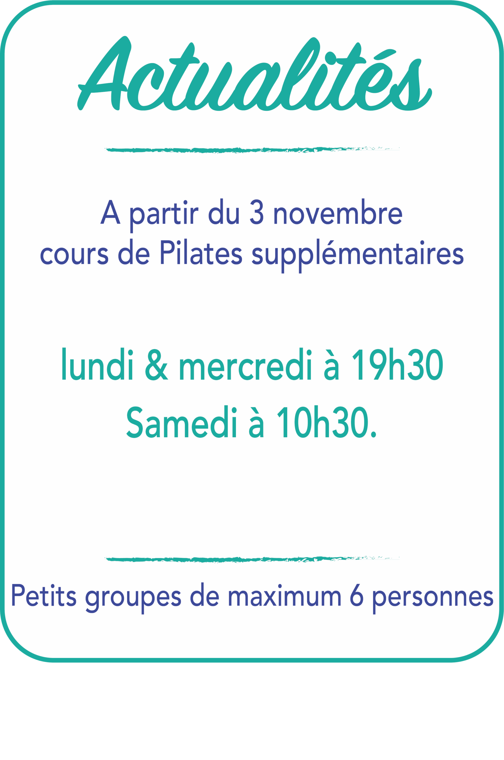 Pour moi, le Pilates est bien plus qu’un travail du corps, c’est un moment de connexion à soi, de détente et de bienveillance. Mon objectif est de vous transmettre cette conscience corporelle et de vous offrir un espace où vous pourrez vous ressourcer, progresser et vous sentir bien, sans jugement.